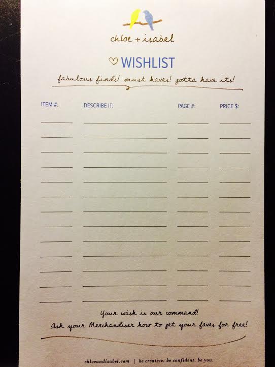 2. write down a wish list with your favorite pieces from the look~book and/ or online boutique with the details asked in the pic, below